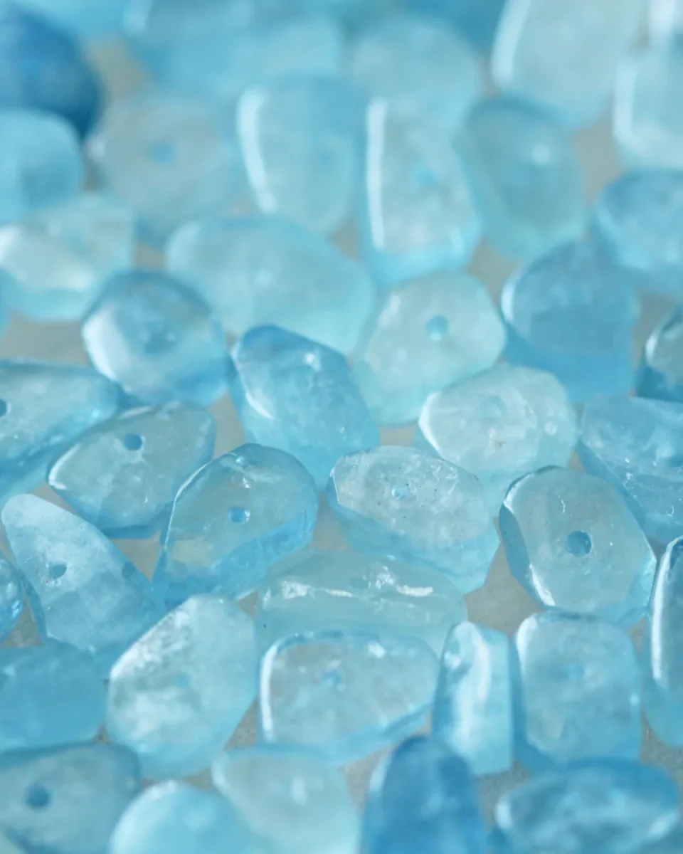 Détails : pierres naturelles AIGUES MARINES / pot en verre