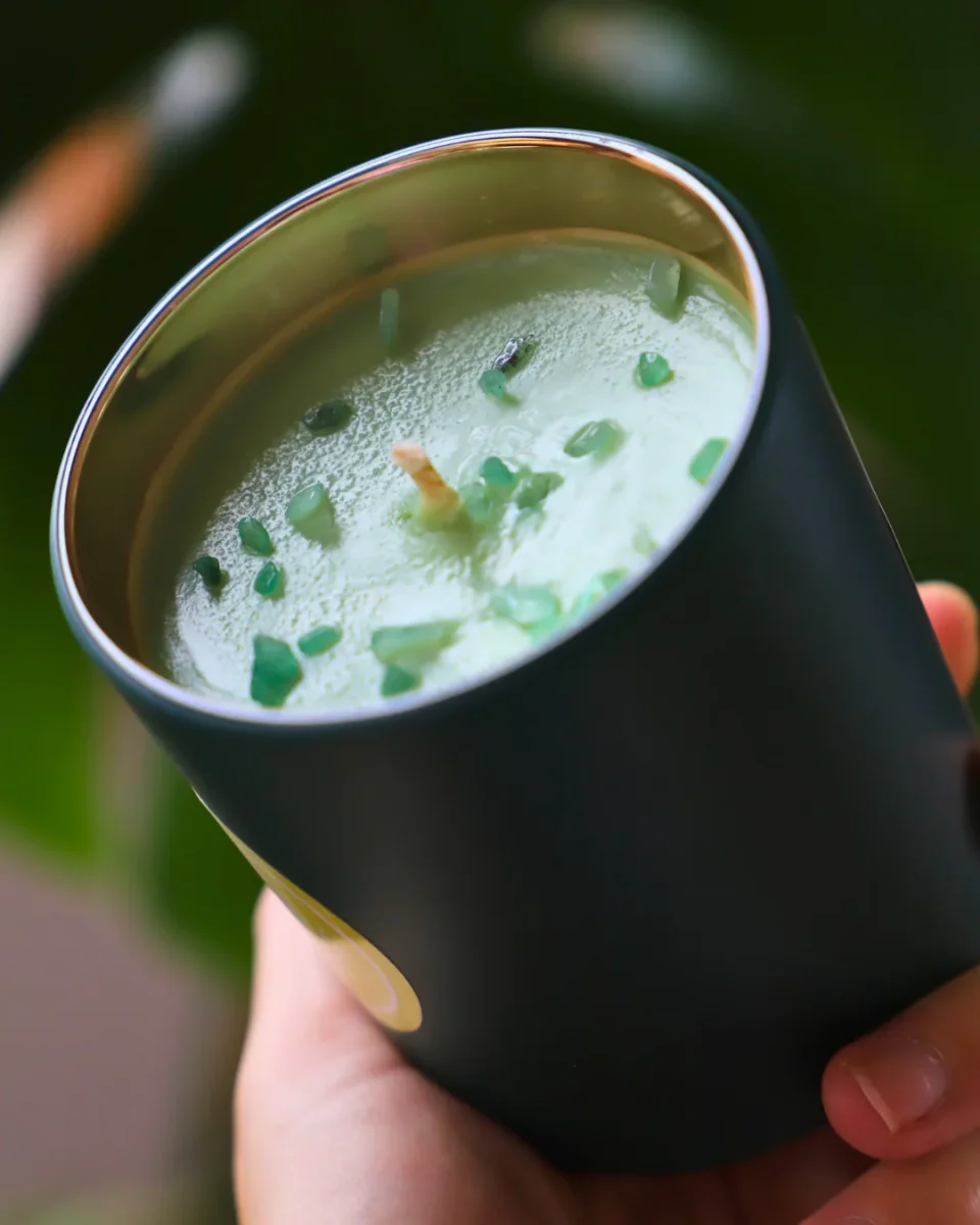 Cette bougie en pot de 200 g, fabriquée avec de la cire de soja d’Alsace, allie un parfum « BALADE EN FORÊT » naturel et sans CMR ni phtalates, provenant de Grasse, à des pierres naturelles d’aventurine.