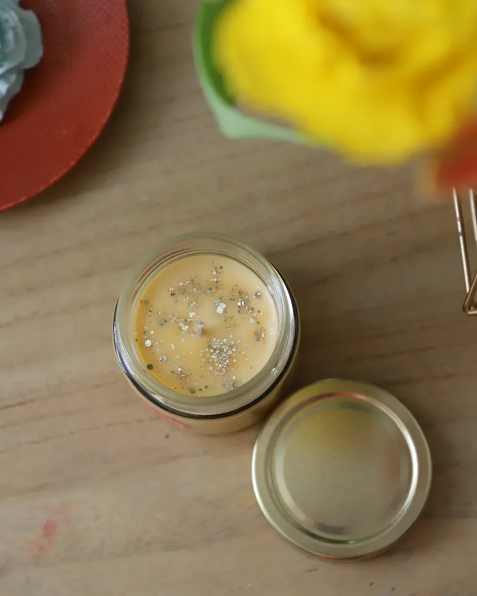 Détails : paillettes biodégradables / avec un couvercle en métal / pot en verre