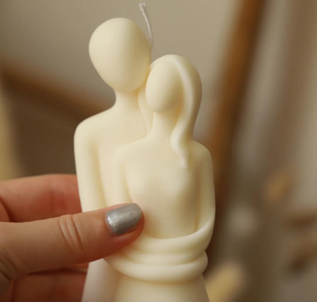 Une bougie amoureuse qui se fait un câlin. Apportez de l’amour chez vous avec cette jolie bougie.
