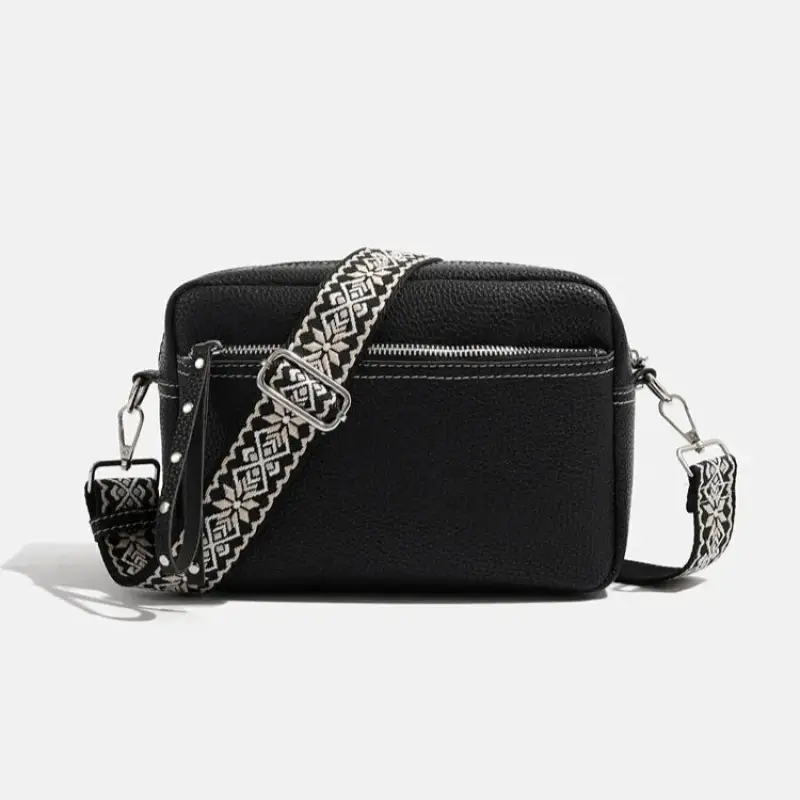 Ce sac à bandoulière est équipé d’une anse réglable et interchangeable, offrant une flexibilité de mouvement et de style en fonction de vos envies. Sa couleur noire intemporelle et son design rectangulaire en font un choix parfait pour celles qui recherchent un accessoire élégant et polyvalent.